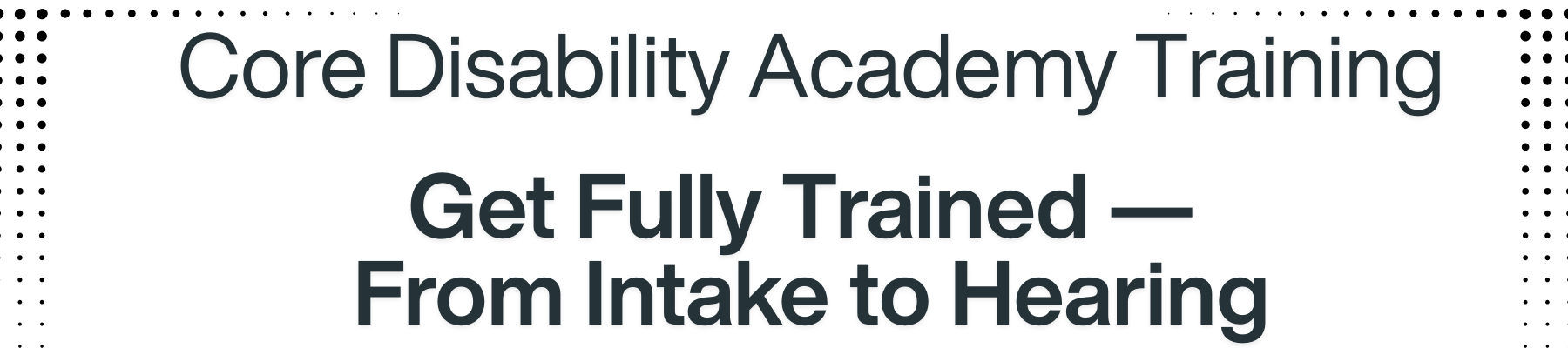 The Disability Academy is a comprehensive professional training ecosystem designed to support Social Security disability representatives at every stage of case development. From initial applications to advanced hearing advocacy, this training platform delivers structured education, real-world strategies, and live tactical instruction to help representatives build stronger cases and improve outcomes for their clients.